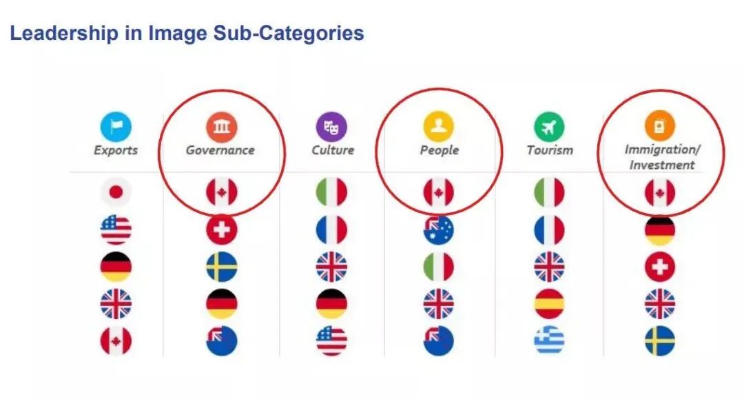 在2020年新一轮的国家品牌指数排名中,加拿大连续第二年获得全球第三名,在六项指标中有三项排名世界第一,分别是:政府治理、公民口碑、移民投资。